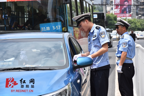 红网邵阳站6月8日讯(记者 曾珍 实习记者 唐思思)正值高考期间,邵阳市区一、二和六中附近实行交通管制。为进一步加强夏季道路交通安全管理工作,全力预防和遏制重特大交通事故发生,为广大交通参与者创造一个安全、畅通、和谐的出行环境,6月8日,邵阳市大祥区交管大队开展“百日会战”整治行动,在各大重要交通路口向过往驾驶人及乘客发放传单宣传夏季安全行车常识。
