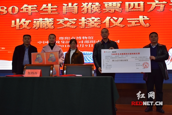 本次集邮生肖嘉年华活动,为集邮爱好者提供了一个收藏投资的平台。在活动现场,邵阳市邮政分公司精心准备了以80版猴票为代表的生肖邮票系列产品、贵金属产品、钱币产品等诸多值得珍藏和投资的瑰宝。作为该分公司的战略合作伙伴邵阳市博物馆,收藏了一套80版四方联猴票,双方在活动现场举行了邮票交换仪式。