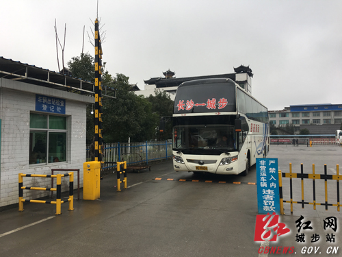 城步至长沙班车满载旅客驶出城步汽车北站。