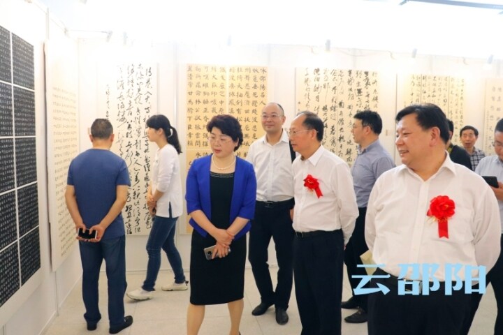 红网时刻4月26日讯(通讯员 陈贻贵 通讯员 回楚佳 周亚芬)4月26日上午,“书道宝庆·文传北塔”邵阳市第九届书法篆刻展在北塔区状元中学开幕。省政协学习联络委员会副主任、省委宣传部原副部长杨金鸢宣布开幕。省文化和旅游厅副厅长、湖南省书法家协会主席鄢福初,市委常委、宣传部长周迎春,市人大常委会副主任赵为济出席开幕式并参观展览。