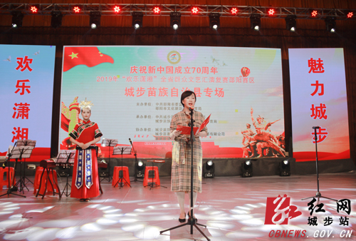 陈文华在演出前致辞,她指出,2019年是纪念新中国成立70周年,也是决战脱贫攻坚、决胜建成全面小康的关键之年。为营造良好的氛围,充分展现新时代人民群众的获得感和幸福感,在市委宣传部和市文旅广体局的悉心指导下,城步自5月份开始举办一系列群众文艺汇演活动。“欢乐潇湘·魅力城步”群众文艺汇演在全县上下掀起了群众文化活动的热潮,“百姓演主角,群众当明星”,充分体现了以人民为中心的发展理念。通过“欢乐潇湘”和“中华一家亲·飞歌城步六月六”山歌节系列活动的开展,既传播了城步特色文化品牌,又引领了社会风尚,促进了城步各项事业的发展。