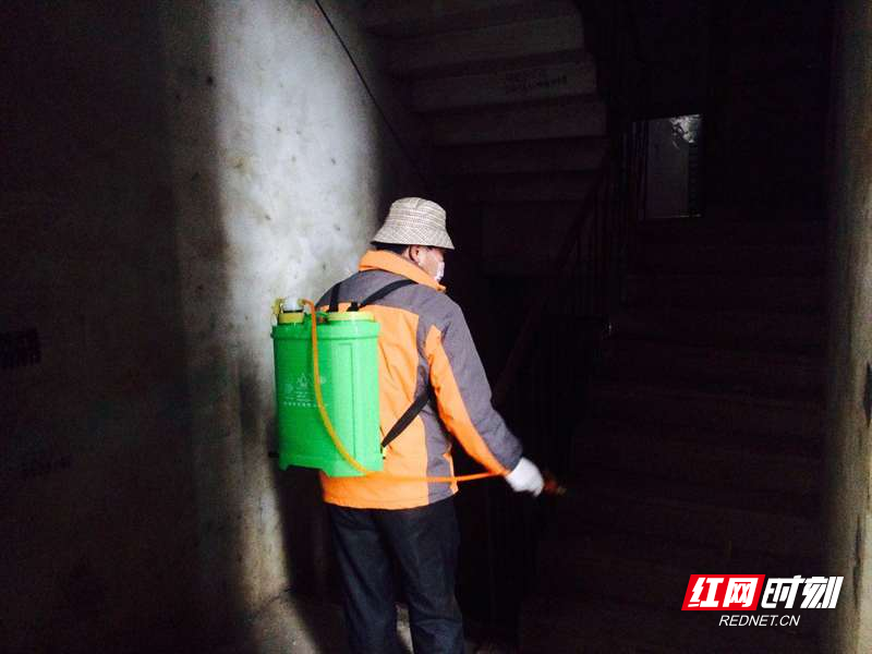 对公共楼道进行消毒。