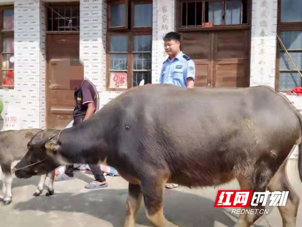 9月29日晚上,罗市镇村民信某某急匆匆赶到罗市派出所,满脸焦急地对值班民警说道:“警察同志,我家一头大水牛被偷了,它是我们家最值钱的物件了,犁田干活都靠它,请公安同志帮帮忙。”值班民警接到村民报警后,立即到现场仔细查看,民警一边耐心开导,一边协同驻村辅警曾淳沿着牛可能走失的方向寻找。在民辅警一天一夜的努力下,终于找到了走失的水牛,并将其送到失主手中。失主信某某牵着失而复得的牛,看着满头大汗的曾淳,他激动不已,对罗市派出所民辅警高度负责的工作态度和一心为民的服务精神连声称赞。