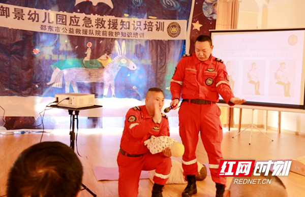 红网时刻2月28日讯(通讯员 魏小青 范送明 许雪怡)为了预防和减少幼儿园意外事故的发生,保护每一位幼儿健康,增长教师的急救知识,提升自救互救能力,2月27日,邵东市红十字会、邵东市公益救援队组织红十字救护志愿者走进御景国际幼儿园开展红十字应急救护志愿服务活动。