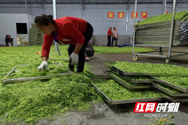 红网时刻新闻6月16日讯(通讯员 杨晓春 肖建华)6月15日,城步白毛坪镇黄伞村金银花产业基地200多名村民,抢抓时机,正忙着采摘金银花花蕾,生产车间一条龙加工生产金银花成品,一片繁忙景象。