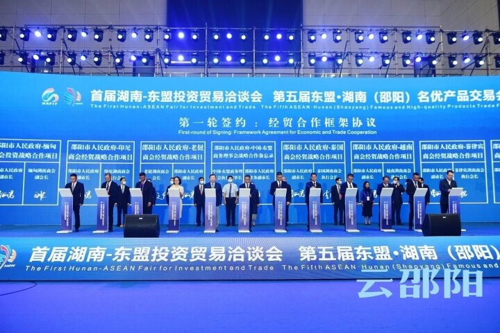 此次盛会期间,邵阳市与东盟各国湖南商会、墨西哥湖南商会以及一批企业等,签署经贸战略合作项目、重大产业项目;各县(市、区)、邵阳经济技术开发区,又举办项目签约专场。1+13场项目签约,邵阳引进资金543亿元。