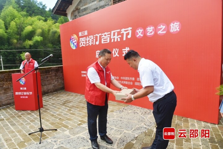 红网时刻新闻7月22日讯(通讯员 陈贻贵 申兴刚)7月21日下午,第三届贺绿汀音乐节文艺之旅活动在邵东市九龙岭镇绿汀村的贺绿汀故居举行启程仪式。副市长蒋伟为文艺之旅采风团授旗,并宣布采风团启程。