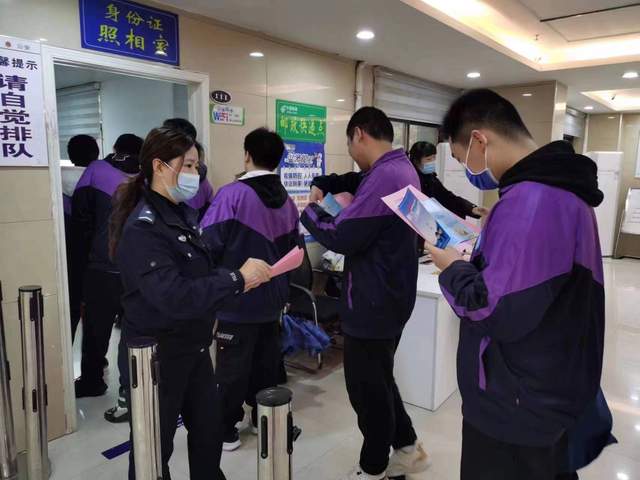 人境大队将办证现场区分为等候区、照相区、指纹采集区,每个区都安排专人引导,为学生们提醒注意事项,提高办证效率。办证民警简化流程,速来速办,确保办证、学习两不误。在学生们排队等待的过程中,民辅警主动开展法制宣传,为学生们发放禁毒、反电诈和未成年人保护等宣传手册,提高学生的防范意识和安全意识。