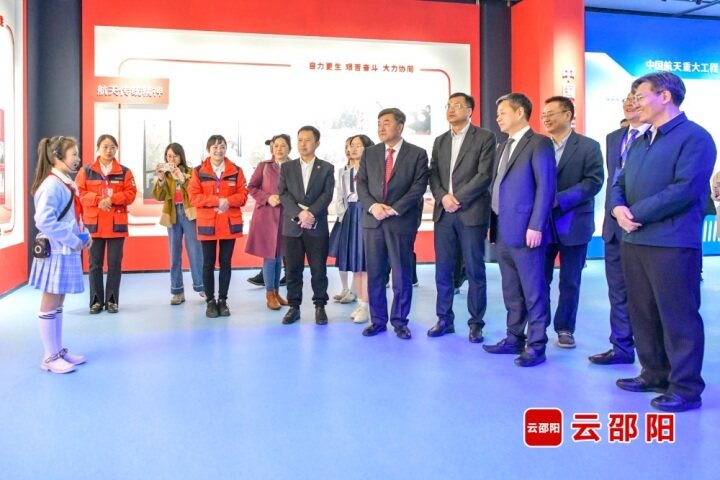 3月31日下午,湖南省邵阳市航天科普系列活动暨武冈国防教育基地启动仪式举行。随后,院士专家和青少年代表一起参观了航天科普展。