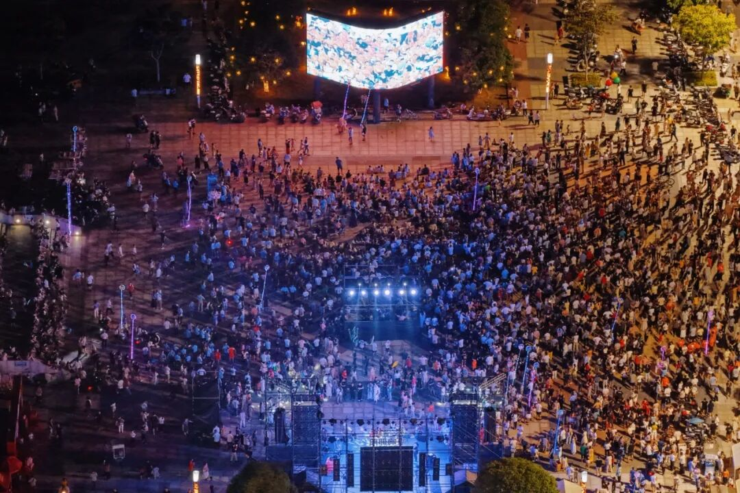 灯下有烟火,东广场人流如织,5D大屏的实时直播,将场外打造成为“湘超”“第二现场”,市民在观看精彩的“湘超”赛事同时,品尝邵阳地道美食。新的夜间消费场景成功打造。