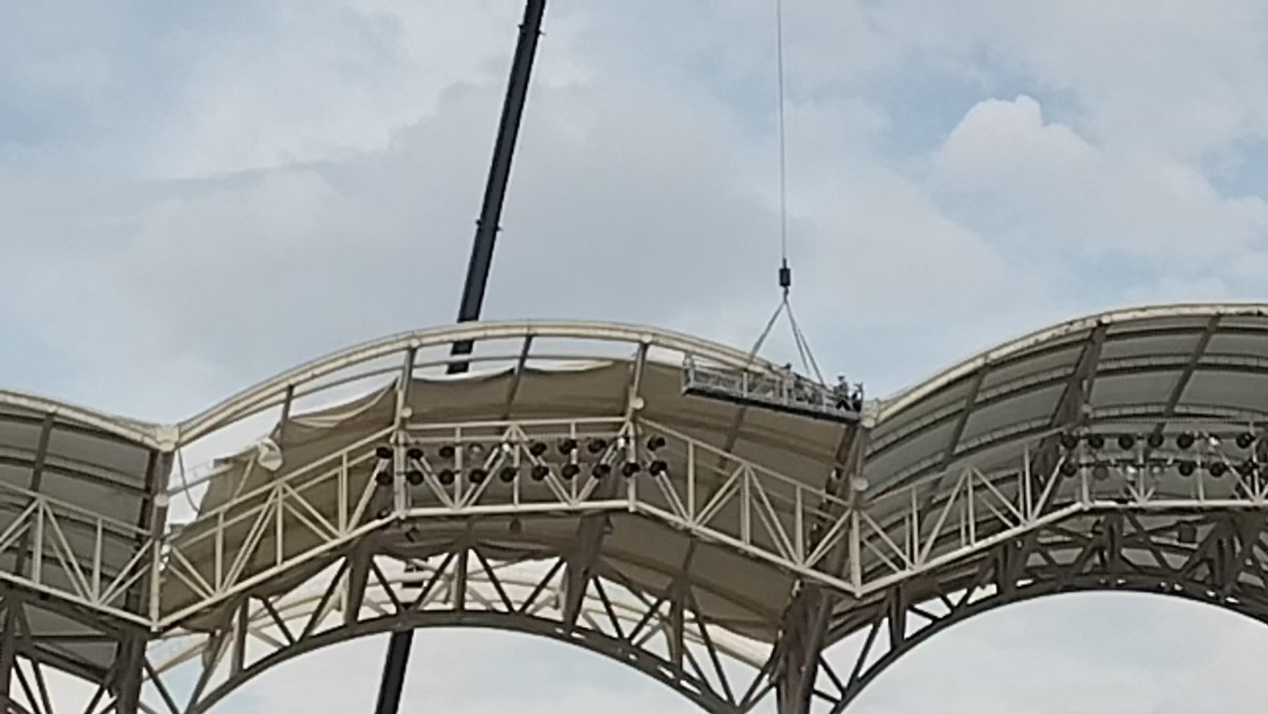 深度清洁,焕然一新;草皮平整,纵享丝滑;照灯更换,场景更亮……历经40天奋战,项目团队高效完成1万平方米外场地面的铺设、76盏专用高杆灯的安装、张拉膜的修复以及室外LED显示屏5D裸眼大屏建设。