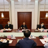 (许达哲同省体育局有关负责同志及龙清泉、孙文雁等运动员代表座谈。)