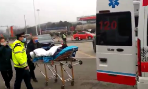协助医生将吴女士转至救护车。